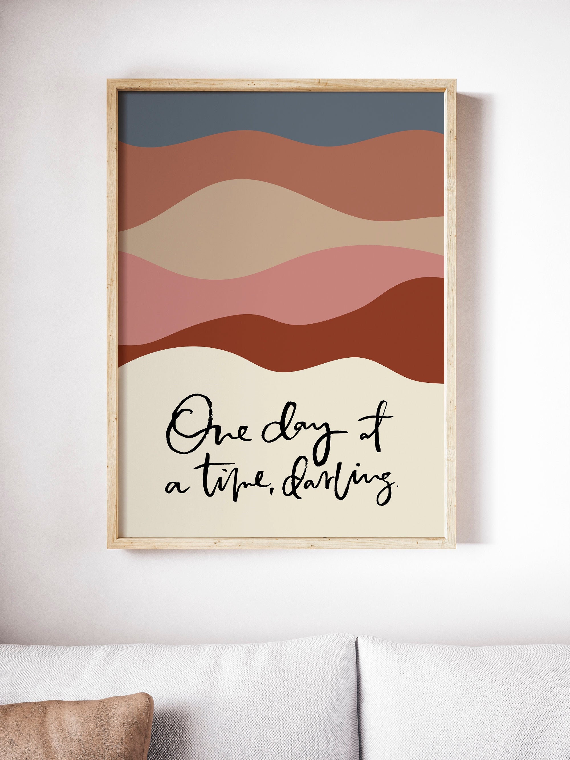 One Day At A Time Quote Print Abstract Landscape Art Boho Etsy